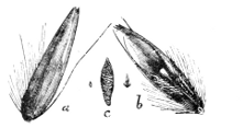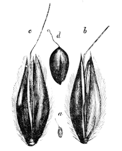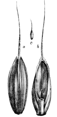 The true Grasses, comprising the Natural Order Graminaceæ—also written Gramineæ—are often popularly confounded with other herbs which possess narrow green ribbon-like leaves, or even with plants of very different aspects—e.g. Cotton-grass (Eriophorum) and other Sedges, and the names Rib-grass (Plantago), Knot-grass (Polygonum), Scorpion-grass (Myosotis) and Sea-grass (Zostera), as well as the general usage of the word grass to signify all kinds of leguminous and other hay-plants in agriculture, point to the wider use of the word in former times. This has been explained by the use of the words gaers, gres, gyrs, and grass in the old herbals to indicate any kind of small herbage.