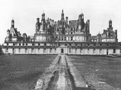 "To destroy the character of Chambord from the outside was not difficult. It was not easy to tame the rude defiance of Vincennes, or give facility to the reserved and guarded approaches of Gaillon. Solid rectangular towers, heavy machicolations, and ponderous drawbridges offer a stubborn resistance to schemes of ruthless innovation; but Chambord was no fortress, it was a country house. The very site is motived by no other reason than the pleasures of the chase. The battlements of Gaillon gave back the echoes of the trumpet, but the galleries of Chambord resounded with the huntsman's bugle.