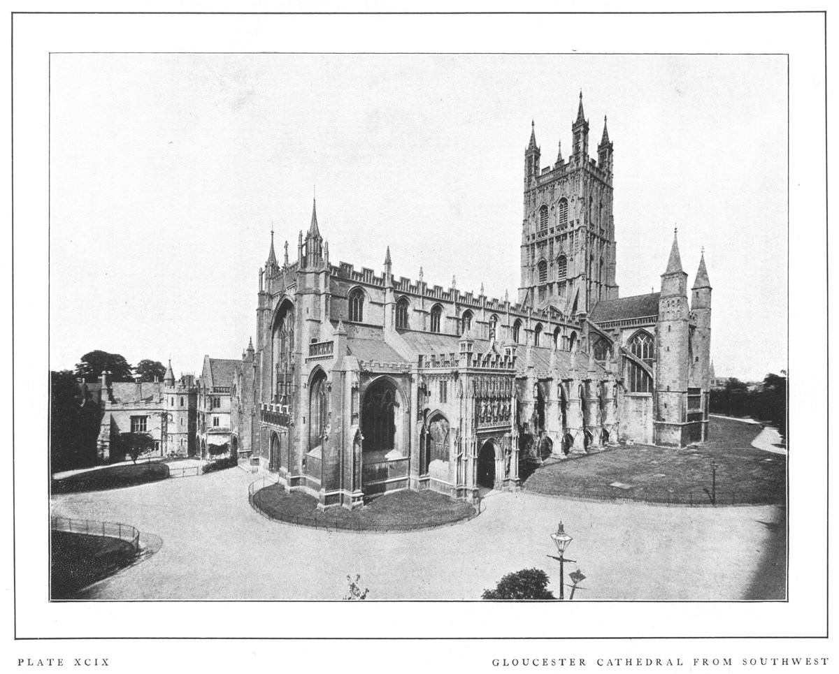 Gloucester Cathedral stands on a site consecrated to religious purposes since the seventh century. The church was raised to cathedral dignity in 1541, having previously been included in the diocese of Worcester. In its present form the body of the church is the work of Abbot Serlo at the end of the eleventh century; but this Norman core was most skilfully altered and recased, chiefly in the fourteenth century, and in general external appearance is thoroughly Perpendicular.