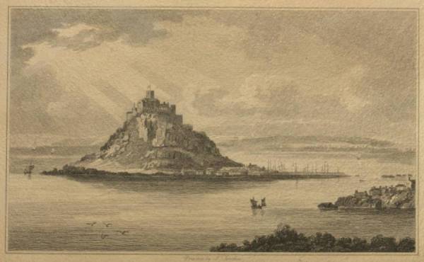 The western shores are sprinkled with picturesque villages, churches, cottages, and villas; and near the eastern margin of the bay, a pile of rocks, supporting a venerable chapel on its summit, starts abruptly from the waves, and presents an appearance of a most singular and beautiful description—this is Saint Michael's Mount, an eminence equally celebrated in the works of the poet, the naturalist, the antiquary, and the historian.