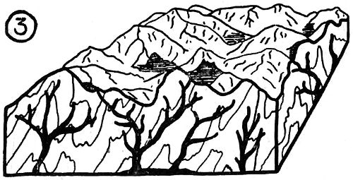4 During a tremendously long period of time the rivers and rains slowly widened the valleys and wore down the ancient mountains to a great plain near sea level.