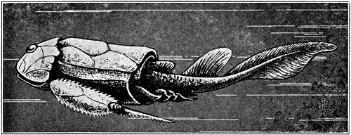 Although fish were rulers of the age during Devonian times, they were of primitive types and apparently depended for defense upon bony skin armour rather than upon speed. The plates and scales of fresh-water fish have been found preserved in the lavender rocks of this age in the Grand Canyon.