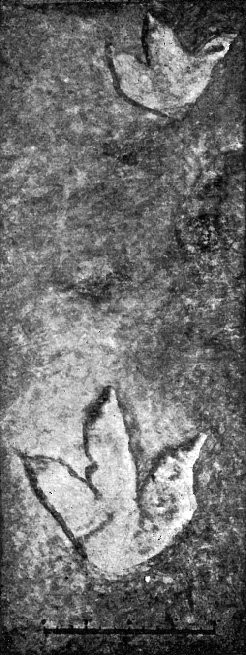 TRACKS OF PRIMITIVE FOUR-FOOTED ANIMALS, COCONINO SANDSTONE. GRAND CANYON PHOTO BY E. W. ENSOR