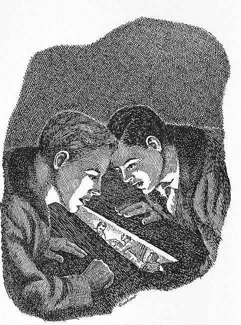 “Listen to who’s talking!” Sandy said indignantly. “We weren’t in that windmill a minute before Ken was telling you to radio to New York to have the T-men close in on the Tobacco Mart.” He broke off, grinning. “Now there’s a nice by-line. ‘By Richard and Ken Holt.’”