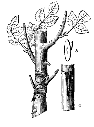 Page 123 contains a reference to “c in fig. 10” which does not exist. The text reads: “Then take a mat-string, or a piece of yarn, and firmly bind it around the bud, leaving only the petiole and bud exposed ...” seemingly intending to refer to the image in fig. 10 on the left.