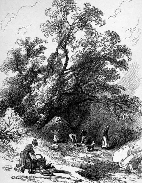 The scene is a large, roomy, clean New England kitchen of some sixty years ago. There was the great wide fire-place, with its crane and array of pot-hooks; there was the tall black clock in the corner, ticking in response to the chirp of the crickets around the broad, flat stone hearth. The scoured tin and pewter on the dresser caught flickering gleams of brightness from the western sunbeams that shone through the network of elm-boughs, rattling and tapping as the wind blew them against the window. It was not quite half-past four o'clock, yet the December sun hung low and red in the western horizon, telling that the time of the shortest winter days was come. Everything in the ample room shone with whiteness and neatness; everything was ranged, put up, and in order, as if work were some past and bygone [8] affair, hardly to be remembered. The only living figure in this picture of still life was that of a strapping, buxom Yankee maiden, with plump arms stripped to the elbow and hands plunged deep in the white, elastic cushion of puffy dough, which rose under them as she kneaded.