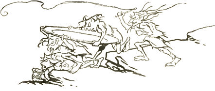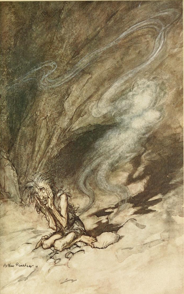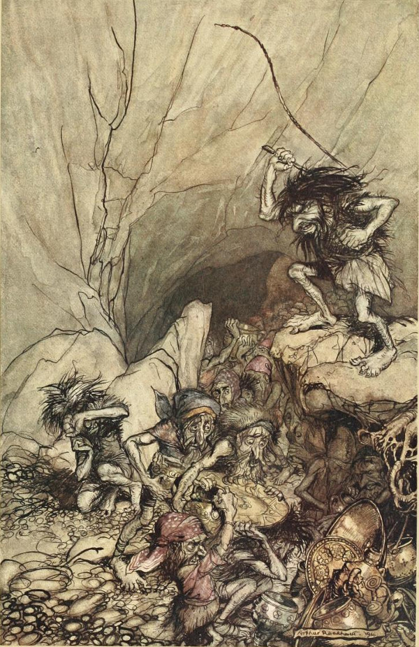 Alberich drives in a band of Niblungs laden with gold and silver treasure plate 12