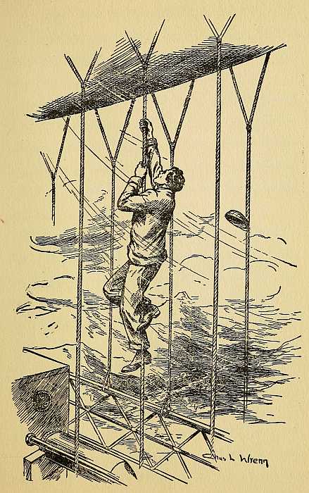 A coil of light but strong rope was looped to the bridge in front of Nat. Without an instant’s hesitation, he tied one end of it about his waist. He had reached a desperate determination. If he got a chance, he had made up his mind to save Joe Hartley if it were humanly possible. The other end of the coil he knew was made fast to the bridge rail, so that a final testing of the knot about his waist was all that was necessary to put his daring scheme into execution. But first Nat fixed the wheel by means of the metal grips provided for that purpose.