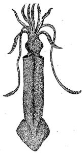 Fig. 3 is the squid, also called the ink-pot, from the fact that when in danger he ejects a stream of ink-like fluid, which forms a black cloud in the water about him; through this he escapes from his enemies.
