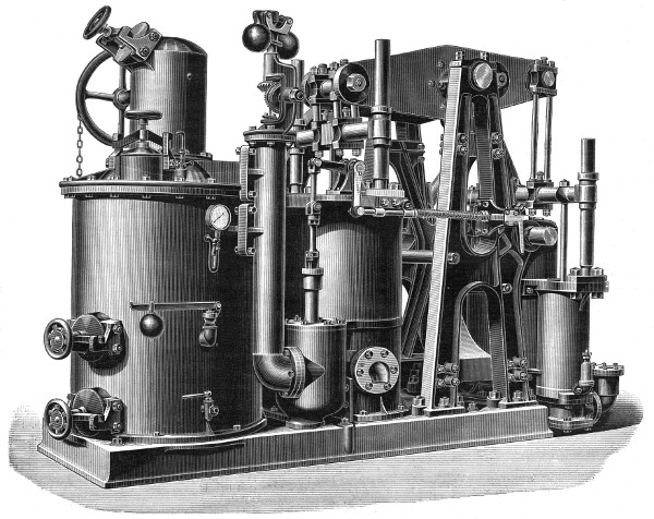 These engines, for there are a pair, have been constructed by the Pulsometer Engineering Company, Limited, London, for the Northern Lights Commissioners, and will be erected on a lightship, probably at the North Carr. Each engine is nominally of six horse power, but actually gives ten horse power. The motor cylinder is 24 in. in diameter, the air pump 18 in., and the compressing pumps 9 in. and 5 in. respectively, all with a stroke of 18 in.