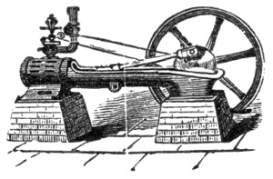 The engine is regulated by a governor, which varies the proportion of air admitted above and below the fuel, and thus alters the temperature of the gases admitted to the cylinder. The distributing valves are of the conical type, worked by tappets, and the fall is regulated by an air cushion.