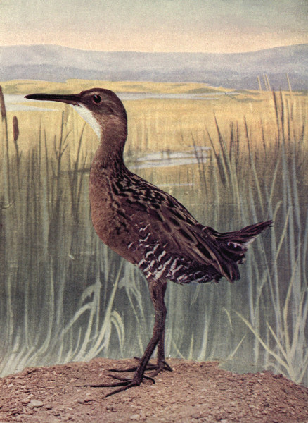 At the nesting-season the rails are the noisiest of birds; their long, rolling cry is taken up and repeated by each member of the community. The thin bodies of the birds often measure no more than an inch and a quarter through the breast. "As thin as a rail" is a well-founded illustrative expression.