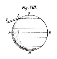 Sia collocato sopra la gran calamita SBMR il corpo calamitico in primo significato TA con la parte A rivolta verso la banda settentrionale della gran calamita. Dico che acquisterà la virtù calamitica con le leggi e condizioni di sopra spiegate nella proposizione, imperocchè essendo l'emisfero BSR parte settentrionale è necessario per le cose dimostrate che i corpuscoli di calamita sparsi in TA si rivoltino verso il globo con le loro bande meridionali, ed in conseguenza le settentrionali saranno rivoltate alla parte opposta. Ma se il medesimo corpo sarà rivoltato in contraria posizione con la parte T verso il globo, allora i corpuscoli di calamita sparsi per AT muteranno situazione, e però il corpo AT [car. 200 verso.] muterà la virtù, e quella parte, che prima aveva la virtù meridionale, si farà di virtù settentrionale, la qual cosa si doveva dimostrare.