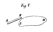 Sia un corpo calamitico in primo significato AB calamitato col toccamento di B e del settentrione S della calamita SM. Dico che se sarà spinto sopra 'l dorso della calamita verso la parte meridionale M può essere che perda la virtù. Imperocchè, essendo il corpo AB calamitato col contatto di B e del settentrione [car. 198 recto.] S, è manifesto per le cose dimostrate che la parte B è [556] divenuta di virtù meridionale, dovendosi esser rivoltati i suoi corpuscoli di calamita sparsi con i meridionali verso B. Ma muovendosi il corpo AB con B verso M, quei corpuscoli disseminati si rivolgeranno, e se il movimento verso M del corpo AB sarà fatto senza dare il debito tempo che tutti si rivolghino, ma solo una parte di essi, e gli altri restino nel loro stato di prima, verranno disordinati, e confusi quei corpuscoli in modo che non potranno operare nè le parti settentrionali nè le meridionali, e così la virtù rimarrà smorzata ed estinta. E però se sarà un corpo calamitico in primo significato calamitato col toccamento ecc., la qual cosa si doveva dimostrare.