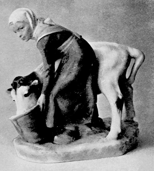 How many of the great factories of the world can claim two great epochs in their history? But Copenhagen can do this. The first is the Müller period (overglaze decoration), when the factory assumed its well-known mark, in 1775, of the three blue lines indicating the three waterways of Denmark—the Sound and the Great and Little Belts. The second great period, the Modern Renaissance (underglaze decoration), practically commenced in 1885.