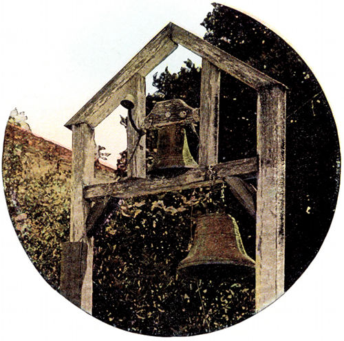 THE BELFRY OF MISSION SANTA BARBARA—THE BELLS HERE WERE SENT FROM SPAIN A CENTURY AGO