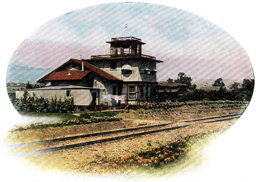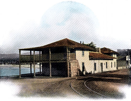 THE SOUTHERN PACIFIC RAILROAD STATION AT SANTA BARBARA IS SUITABLY BUILT IN MISSION STYLE