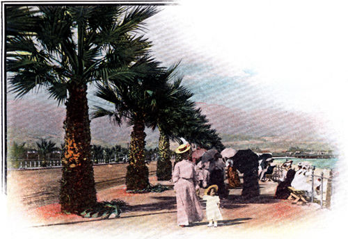 THE BOULEVARD LEADS TO A BATH-HOUSE OF UNIQUE DESIGN—LOS BANOS—CLOSE BY THE SEA