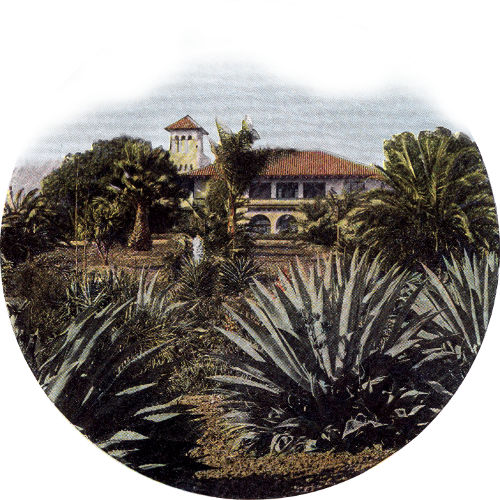 AT MISSION SANTA BARBARA (ESTABLISHED 1782) THE BEST PRESERVED OF THE CALIFORNIA MISSIONS
