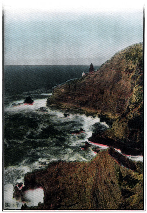 THE LIGHTHOUSE AT POINT CONCEPCION IS ON THE SHELF OF A SURF-BEATEN CLIFF THAT RISES TWO HUNDRED AND FIFTY FEET ABOVE THE SEA