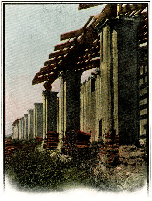THE ROMANTIC RUINS OF SOLEDAD—THE MISSION OF SOLITUDE—FOUNDED IN 1791—HERE THE FRIARS BUILT AN AQUEDUCT EIGHT MILES IN LENGTH