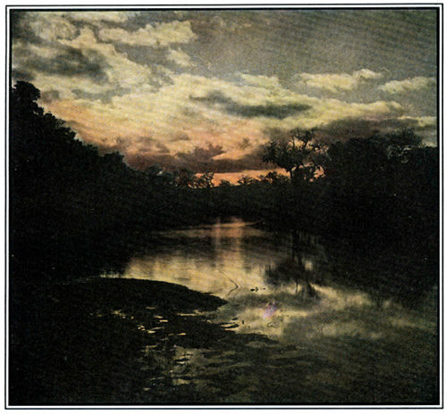 SUNSET AMONG THE OAKS AND SYCAMORES THAT BORDER LAKE YSABEL