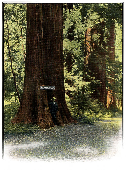 AMONG THE BIG TREES OF THE SANTA CRUZ MOUNTAINS—ALL OF THE TREES IN THIS GROVE BEAR DISTINGUISHED NAMES