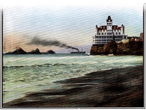 EVERYONE HAS HEARD OF SAN FRANCISCO’S CLIFF HOUSE AND THE SEAL ROCKS—HERE, EVERY HOLIDAY, GAY CROWDS PICNIC ON THE SANDS, BATHE IN THE BREAKERS AND WATCH THE SPORTIVE SEA LIONS
