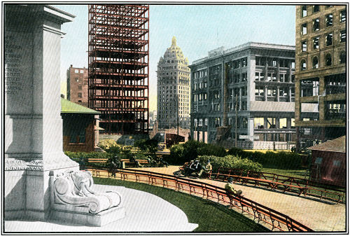 UNION SQUARE—SAN FRANCISCO, THE CENTER OF THE BUSINESS SECTION, WHERE RAPID RECONSTRUCTION HAS ALREADY PROVIDED THE NUCLEUS OF THE NEW CITY