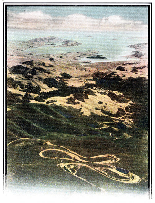 As Vesuvius is to Naples, so is Tamalpais to San Francisco, though the menace is missing, the crater no longer shows the signal cloud of sullen fires. Its extinct volcanic summit rears itself 2,590 feet above sea level, as one looks across the bay from the city. Up its slopes runs a railway that is a marvel of engineering construction. It’s quite the popular thing to hie away to the eyrie tavern on the crest of this mountain, there to be alone with the sea and sky and one’s thoughts. Gertrude Atherton’s latest novel was written amid these surroundings. Around the base of this mountain are sheltered slopes on which are the homes of San Francisco residents; across the bay, by Oakland, Berkeley and Alameda, the home district runs.