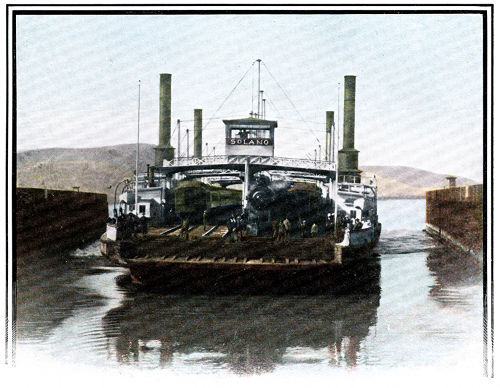 CROSSING CARQUINEZ STRAITS—THE SOUTHERN PACIFIC FERRY BOAT “SOLANO.” THE LARGEST TRAIN FERRY IN THE WORLD