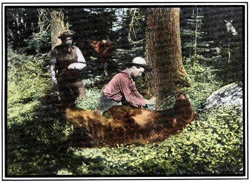 On the train goes, winding and twisting on and upward and downward, into Oregon through the cañons of the Siskiyou range, with the never-to-be-forgotten sight of the fertile valley of the Rogue river, with farmhouses that look like New England, with their white paint and green blinds; with fruitful orchards, long stretches of green fields, glimpses of mining operations, and always mountains and forest, and forest and mountains, near and far. Here, in southern and eastern Oregon, is a comparatively new paradise for the sportsman, and a wondrous scenic region. Here are chances for stop-over trips, long to be remembered, with prospects of big game trophies that will afford countless texts for hair-raising stories at home.