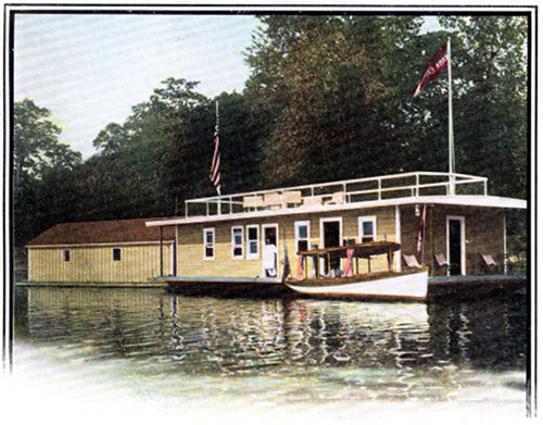 HOUSE BOATING ON THE WILLAMETTE, WITH ITS CLEAR WATERS, ITS WELL TIMBERED AND PICTURESQUE SHORES, IS A JOY OFTEN INDULGED IN BY MANY OREGONIANS