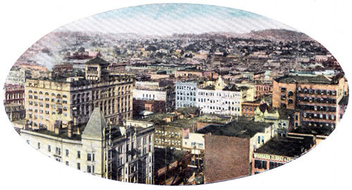 For all of California’s richness, San Francisco is the centering point. It is upon the west shore of San Francisco bay, a land-locked harbor that has been both the pride and marvel of navigators ever since Lieutenant Juan De Ayala, in August, 1775, sailed in to the harbor through the Golden Gate and told the world of its wonders. The coming of the padres and the founding of the Mission was the virtual founding of the city, for about the Mission soon grew the small settlement of Yerba Buena. Then on January 19, 1848, came the discovery of gold. Within two years over 100,000 adventurous men came, and many remained to help upbuild San Francisco and California. Across the bay on the eastern shore is Oakland, third city on the coast, with its 175,000 people. It is a city of slopes covered with charming homes, spreading northward to the city of Berkeley, seat of the great University of California and noteworthy for its loveliness. Southward and adjoining is Alameda. These sister cities perhaps unexcelled in the world as a residence section, are now assuming great business importance also. San Francisco’s commerce increases steadily. In the great fire of April, all the water front with the wharves and steamer docks, was untouched. The harbor of San Francisco is a wonder among harbors, the bay and its connections extending north and south for about forty miles, affording anchorage for the merchant fleets of the world. It is entered through the Golden Gate, a passage five miles long, and one mile in width at its narrowest portion. These straits within recent years, 1890 to 1904, have been fortified with the most approved ordnance, and the fortifications are recognized by military experts as among the best defenses of any city of the nation. Within the bay, several islands are controlled by the government and fortified, while at the Government Navy Yard, and at Mare Island, north of the city, and at the Union Iron Works, on the peninsula, are docks capable of receiving modern warships. Here at the Union Iron Works have been built some of the crack ships of the navy, including the cruisers Charleston, San Francisco, Olympia, the battleships Oregon, Ohio, South Dakota, Wisconsin, and a number of smaller craft.