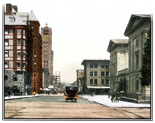 SIXTH STREET PORTLAND IS TYPICAL OF THIS PROGRESSIVE CITY. THE HOTEL PORTLAND AND “THE OREGONIAN” BUILDING ON THE LEFT