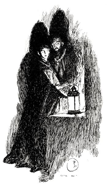 The strange gentleman, when he had come to within a little distance of Oliver, stopped, and beckoning to the little lean serving-man who followed him, held a short whispered talk with him. The little lean serving-man nodded, and then the stranger came straight across the street.