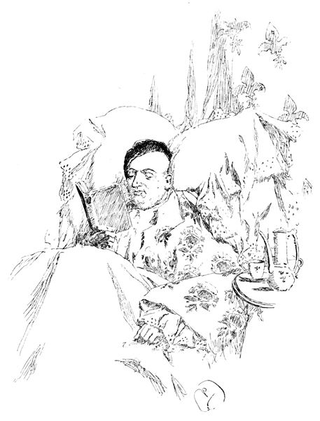 | "HE IS CLAD IN A LOOSE DRESSING-ROBE OF FIGURED CLOTH, AND LIES IN BED READING HIS BOOK" | " " 114 |