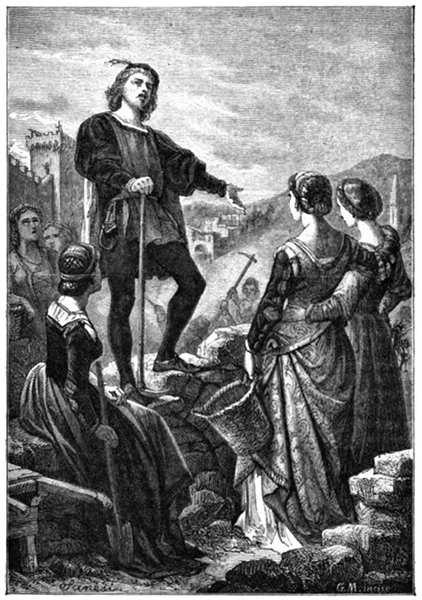«E già tardammo anche troppo», soggiunse Luigi Alamanni; e così favellando prese pel braccio il Buondelmonti e salirono.
