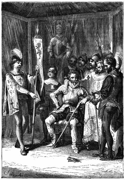 [2] In cotesti tempi dame e cavalieri si affaticarono a indovinarne il significato; ma, per quello che la tradizione lontana ci tramandò, pare che madama d'Alençon intendesse, mediante sì fatta impresa, ammonire Francesco allora duca d'Angoulème, quando prese ad amare la giovane sposa di Luigi XII, Maria d'Inghilterra, dalla fecondità della quale correva pericolo di rimanere escluso dal reame di Francia.