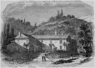 Grâce à la complaisance de M. Kugelmann, nous pouvons aujourd'hui montrer à nos abonnés quelques-uns des dessins qui ornent cet intéressant volume. Faisons avec eux deux petites excursions sur les deux rives de la Seine; allons à Montmorency nous promener à une ou à cheval, boire du champagne et visiter l'Ermitage, cette charmante maison de campagne que la marquise d'Epinay fit construire discrètement pour J.-J. Rousseau pendant un de ses voyages à Genève.--Que si, aux promenades à âne ou à cheval, nous préférons les plaisirs enivrants du bal, courons à Sceaux, où l'on danse sur les ruines de ce beau château construit par Colbert, et dont il ne reste plus qu'un pavillon: là aussi nous retrouverons des souvenirs littéraires. Ce château gothique avec tourelles mâchicoulis, fossés et ponts-levis, qui attire dans la Vallée-aux-Loups l'attention de tous les promeneurs, M. de Chateaubriand l'a fait bâtir à son retour de la Palestine, il y écrivit les Martyrs. Il appartient aujourd'hui à M. Sosthène de La Rochefoucauld...