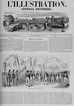 Que les faiseurs de nouvelles le lui pardonnent! l'Illustration ne peut, dans les sujets qu'elle reproduit, suivre que les faits, elle ne peut accompagner l'imagination de ces messieurs. A en croire les uns, tout est fini quant à la satisfaction à obtenir par la France du Maroc, et M. le prince de Joinville va revenir; à en croire les autres, le jeune amiral revient en effet, mais rappelé par la prudence ministérielle. Ces versions deviendront peut-être des faits et de l'histoire, mais ce ne sont encore que des prédictions, et comme nos dessins ne se sont pas proposé d'être fantastiques, ce n'est pas le retour, mais l'embarquement de M. le prince de Joinville que nous reproduisons.