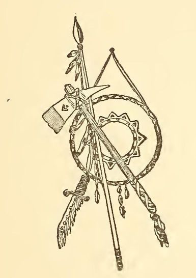 These being, however, greatly allayed and soon after cured by his grandmother's skill in medicines, Manabozho, as big and sturdy as ever, was ripe for new adventures. He set his thoughts immediately upon a war excursion against the Pearl Feather, a wicked old manito, who had killed his grandfather. Pearl Feather lived on the other side of the great lake, but that was nothing to Manabozho. He began his preparations by making huge bows and arrows without number; but he had no heads for his shafts. At last Noko told him that an old man, whom she knew, could furnish him with such as he needed. He sent her to get some. She soon returned with her wrapper full. Manabozho told her that he had not enough and sent her again. She came back with as many more. He thought to himself, "I must find out the way of making these heads."