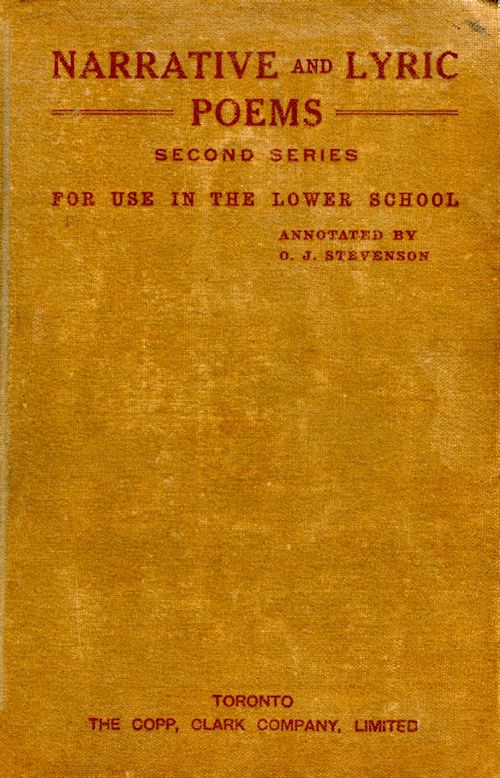 The poems in the following list are those prescribed by the Department of Education, in the Province of Ontario, for examination for the Junior Public School Diploma. In addition to these poems Scott’s Quentin Durward is also prescribed for this examination. See Circular 58.