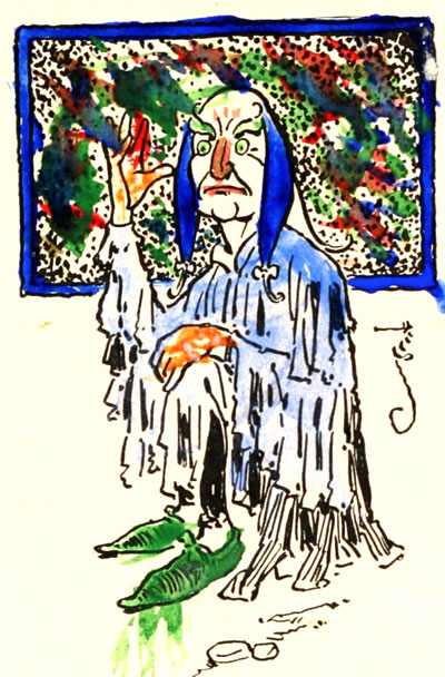 Bumbus, with his moustache out of curl, his hat dented and rimless, his trousers baggy at the knees, and his eyes bleary and bloodshot from lack of sleep.
