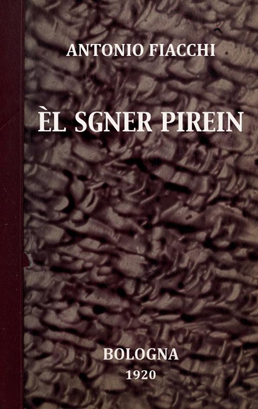 The Project Gutenberg EBook of Èl Sgner Pirein, by Antonio Fiacchi This eBook is for the use of anyone anywhere in the United States and most other parts of the world at no cost and with almost no restrictions whatsoever. You may copy it, give it away or re-use it under the terms of the Project Gutenberg License included with this eBook or online at www.gutenberg.org. If you are not located in the United States, you'll have to check the laws of the country where you are located before using this ebook. Title: Èl Sgner Pirein Author: Antonio Fiacchi Commentator: Lorenzo Stecchetti Editor: Oreste Trebbi Illustrator: Augusto Majani Release Date: March 21, 2015 [EBook #48542] Language: Italian Character set encoding: UTF-8 *** START OF THIS PROJECT GUTENBERG EBOOK ÈL SGNER PIREIN *** Produced by Carlo Traverso, Claudio Paganelli, Barbara Magni and the Online Distributed Proofreading Team at http://www.pgdp.net (This file was produced from images generously made available by The Internet Archive)