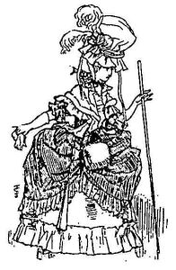 Countess.—A yellow silk petticoat, with gay over-dress. Hair high and powdered. Jewels and fan.