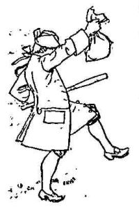 Lustucru.—French small-clothes, dark colored. Hair in queue, and powdered. Also a cowl for Act II.