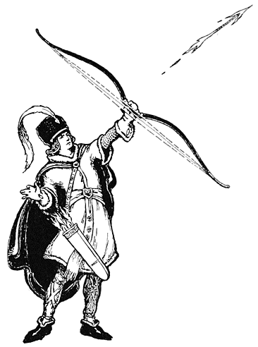 Then Ilya went up to a willow tree that overhung a brook, broke off a twig, and fitted it to his bow, in order that he might keep his vow to abstain from using his fiery darts. And as he drew his bow-string he cried, “Fly, dart, fly! Pierce the left eye of [42]Nightingale the Robber, and come out at his right ear.”