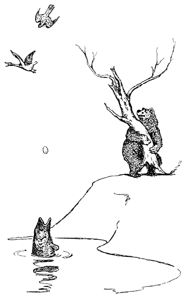 Onward he went and ever onward, until he came to the margin of the ocean sea, and then he knew not how to go farther. He had eaten all the cakes and was very hungry, so very hungry that when a hawk flew up above his head, he cried: “Hawk, hawk, I will shoot you dead and eat you without cooking.” [305]