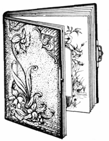 | 45/33. White Celluloid, | colored flower front decoration, plush binding and corner tips, nickel clasp; spaces for 18 cabinets and 8 cards | $16 00 | |